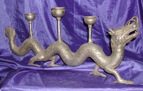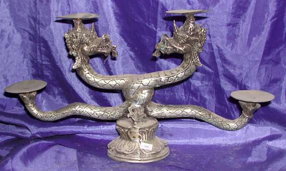 Silver Plated Bronze Dragon Candle Holder |