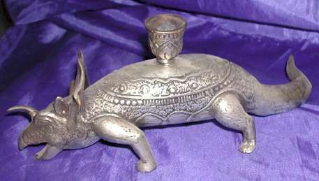 Silver Plated Bronze Dinosaur Candle Holder |