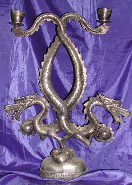 Silver Plated Bronze Dragon Candle Holder |