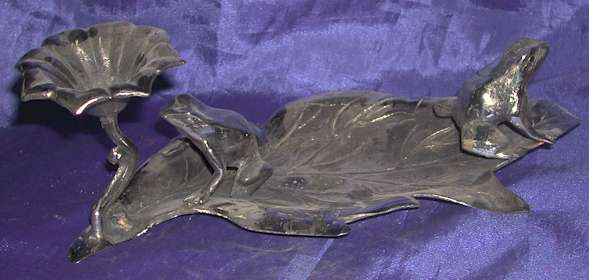 Silver Plated Bronze Tray with Flower and Frog |