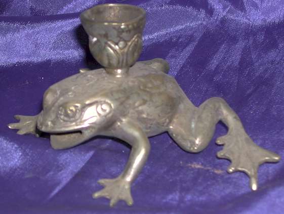 Silver Plated Bronze Frog Candle Holder |